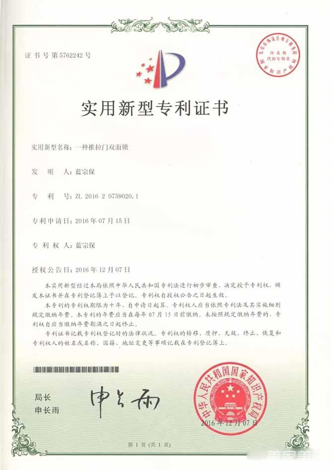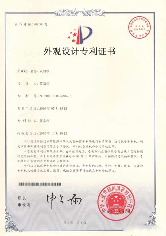 1、外观设计专利证书-双面锁