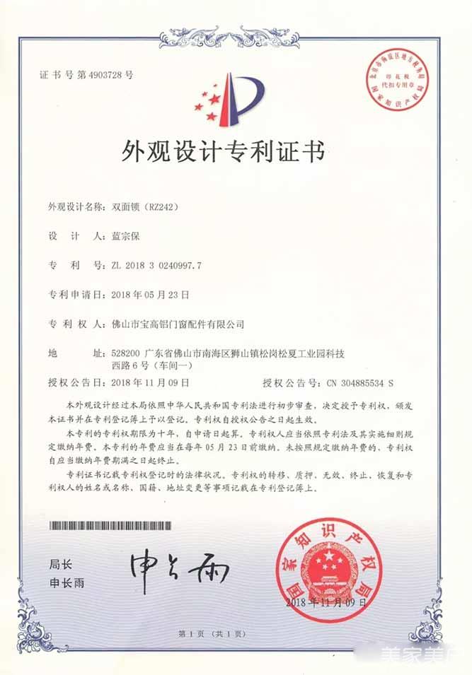 2、外观设计专利证书-双面锁(RZ242)