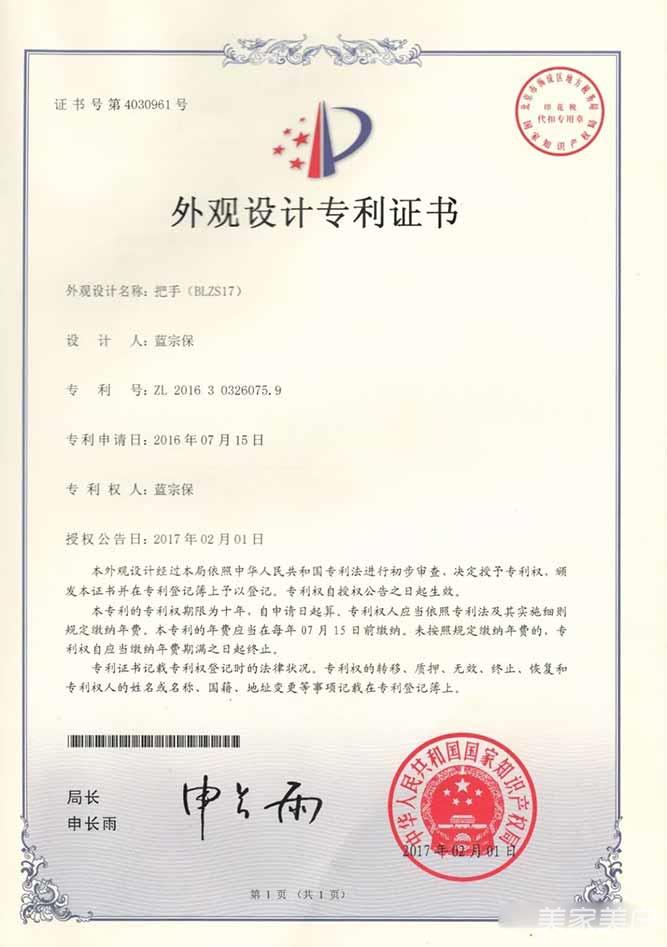 6、外观设计专利证书-把手(BLZS17)
