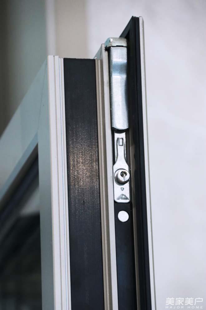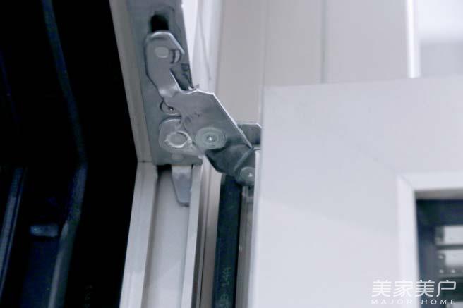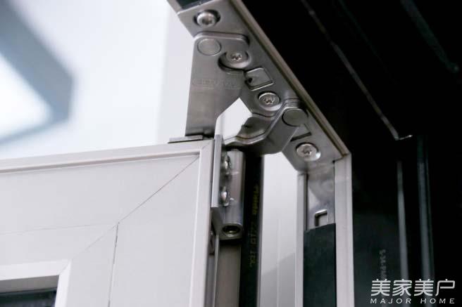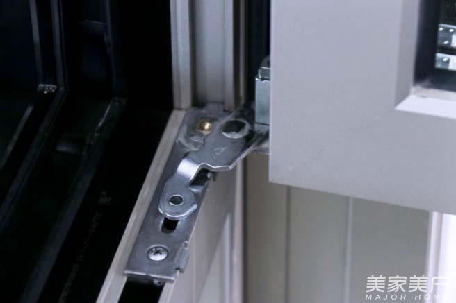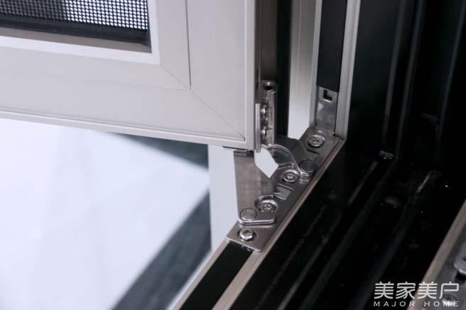 铰链是窗框与窗扇之间的连接处,也是窗扇活动的主要支撑,圣卡罗作为双断桥窗,拥有厚重结实的窗扇。为此,轩尼斯选用了丹麦斯坦福门窗五金系系统,麦斯坦铰链结构非常特殊,利用铝材之间的独特扣接方式,使窗扇开合更稳固,窗扇打开后其承重力可达80KG,一个成人踩在上面依然稳如泰山,此外,麦斯坦铰链可调节松紧度,便于日拆装以及保养维护等操作。