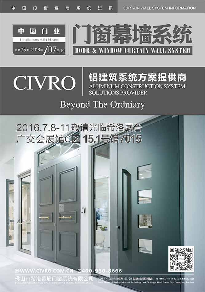《中国门业·门窗幕墙系统》的前身是《建筑门窗幕墙》与《中国门业专刊》,经过资源整合发展为今天的《中国门业·门窗幕墙系统》,改版后涉及的信息更全、定位更准确,融入国内外门窗幕墙行业资讯开阔读者视野。杂志栏目稿件均来源于本杂志记者和行业知名专家学者,更具权威性和专业性。