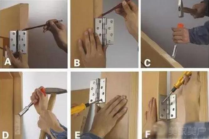 先开合页槽,合页槽与门扇两端的距离以门扇高度的1/10为宜。