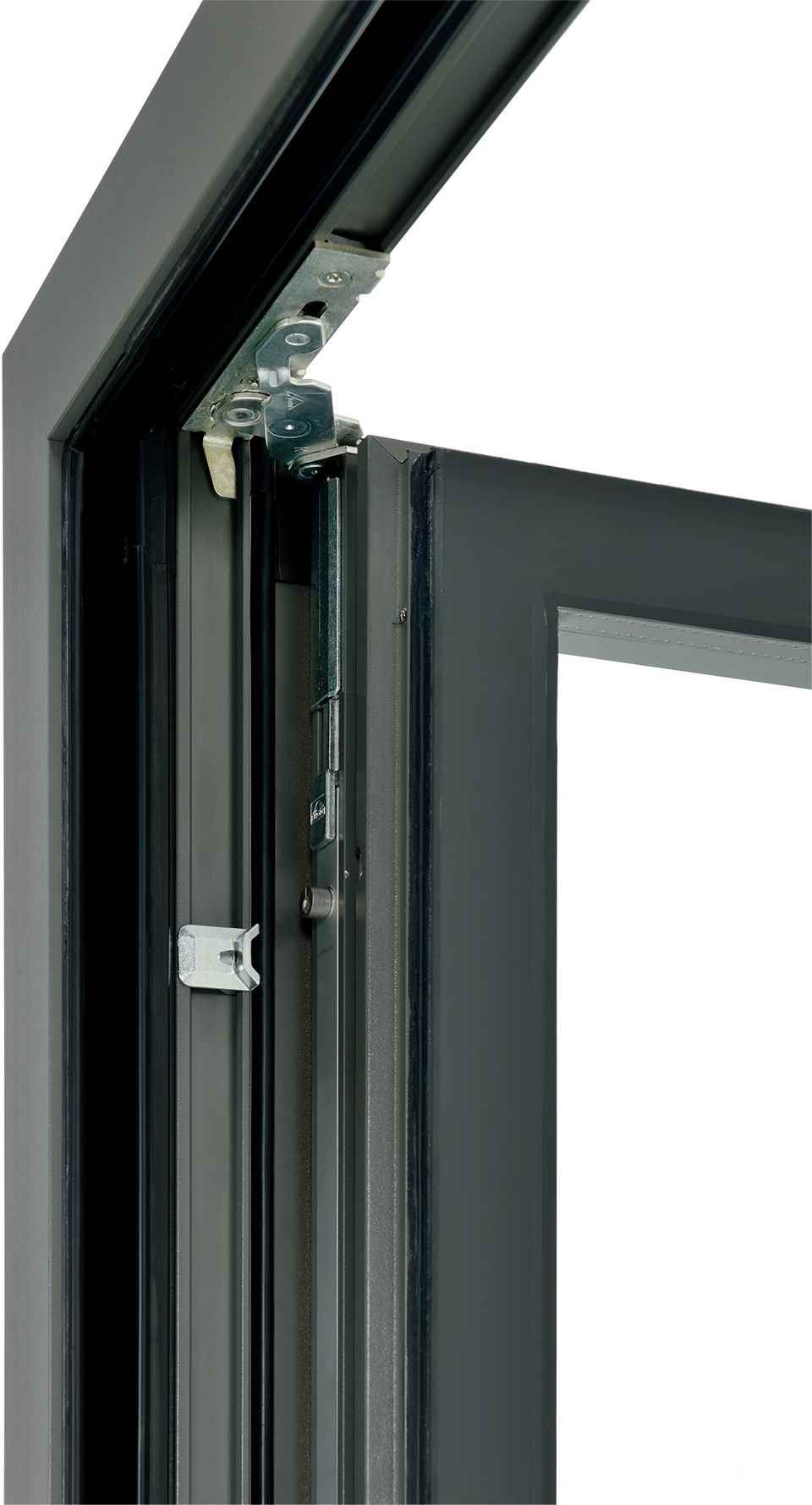 Roto Inowa推拉门五金系列,可应用于铝合金、PVC和实木等型材,拥有许多独创的设计优势,比如开启扇四周采用环绕式不间断的胶条密封;可根据需要方便地增加锁闭点的数量,尤其是勾边处的锁点,有效地保障了高水密性、高气密性、高防撬性等;通过操作执手控制五金系统,对开启扇实现水平横向移动,解决了普通推拉门密封性与操控舒适性的矛盾;加强型下滑轨的性能表现优异,可参照 DIN 18040 标准。