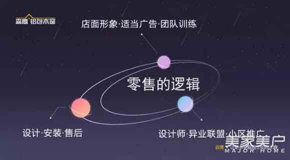 这九个要素可以分为三组:店面形象、适当的广告、团队训练是一组;设计,安装,售后是一组;设计师、异业联盟、小区推广是一组。我认为做好这九件事,你的零售就能做得不错。当然这是指传统零售,不包括新零售。