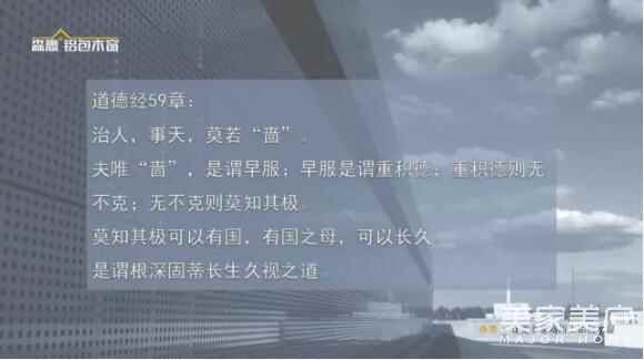 今年的初一,我读到《道德经》77章的一段话,“天之道,其犹张弓与?高者抑之,下者举之,有余者损之,不足者补之。天之道,损有余而补不足。人之道,则不然,损不足以奉有余。孰能有余以奉天下,唯有道者。”我读到最后一句话,眼泪哗地就下来了,我的心被深深触动了。这段话的意思是:自然的规律,不是很像张弓射箭吗?弦拉高了就把它压低一些,低了就把它举高一些,拉得过满了就把它放松一些,拉得不足了就把它补充一些。自然的规律,是减少有余的补给不足的。可是社会的法则却不是这样,要减少不足的,来加给有余的。那么,谁能够减少有余,以补给天下人的不足呢?唯有道者。我就想,我这辈子也没啥成就,小时候是个官迷,也没当上官,也没挣多少钱,森鹰怎么干才能好一点?怎么才能成为窗产业的华为?办法就在这句话里面:“孰能有余以奉天下,唯有道者。”