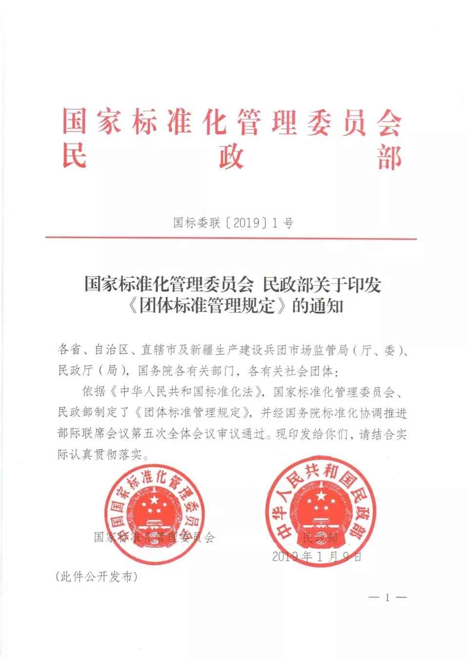 ③2019年1月9日,国家标准化管理委员会、民政部联合印发了《团体标准管理规定》(以下简称《规定》),原有《团体标准管理规定(试行)》即日废止。《规定》共有五章: