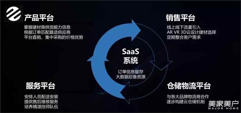 为泛家居行业提供会员制电商化服务的平台(S2B2b2c),平台通过深度整合和优化家装、家具、家居产业供应链资源,并融合泛家居行业实体商家销售终端,打造线上线下有机结合(OMO)的新零售模式(一店两铺)。