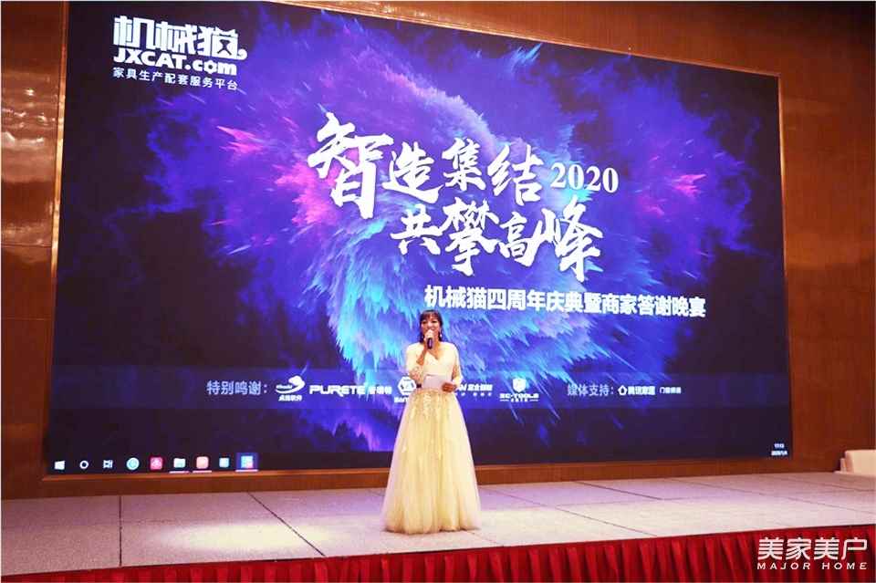 2019年1月4日,机械猫在顺德保利假日酒店召开了四周年庆典暨商家答谢晚宴,主题为“智造集结2020,共攀高峰”,旨在答谢平台商家,同时迎接2020,为行业加油打气。