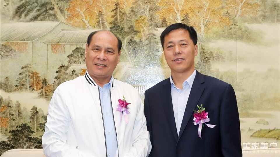 广东省门业协会会长、润成创展董事长关润开(左),青岛晟森机械董事长张建军(右)