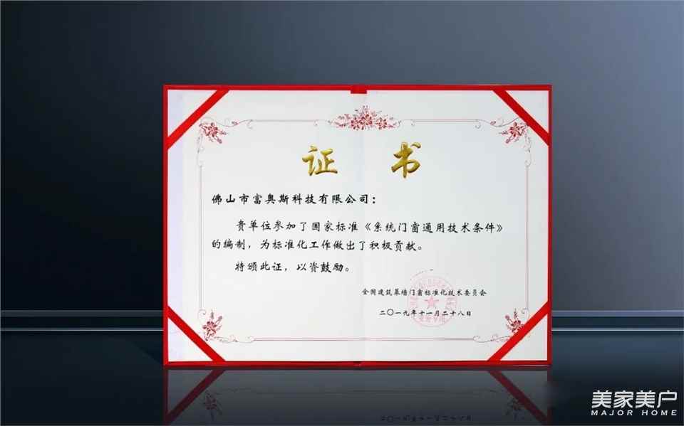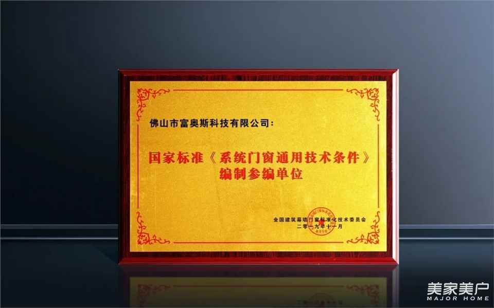 此次获得国家标准《系统门窗通用技术条件》单位,是业界对富奥斯多年来在铝合金门窗领域所取得成就的充分肯定。