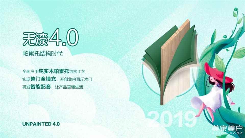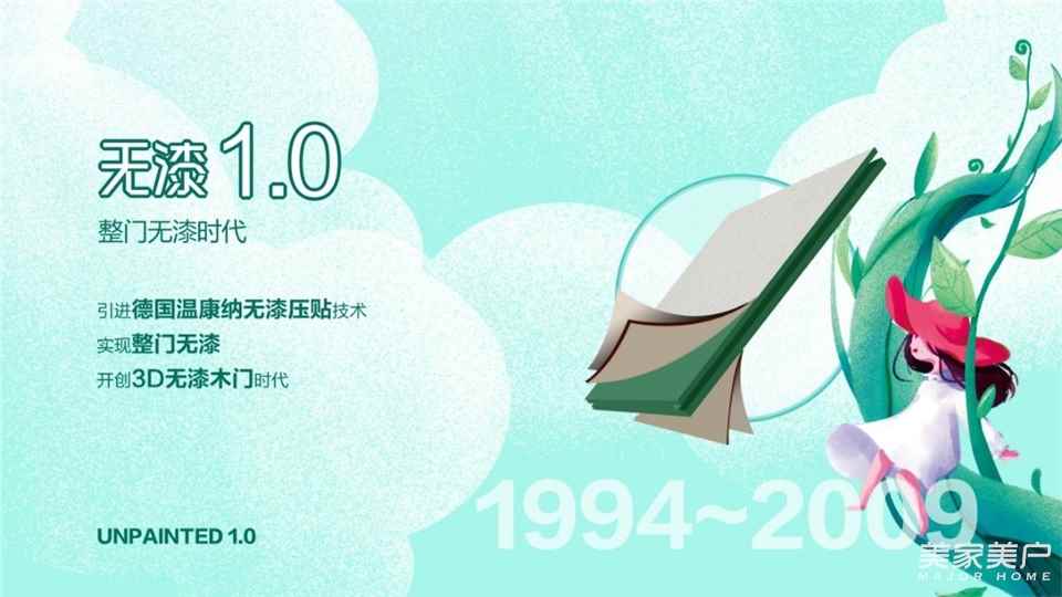 至2019年,已经完成了“第四代无漆技术”的升级。时值首届中国木门无漆日,更将发布划时代的创新技术——第五代无漆技术,它将是中国木门行业环保创新升级的又一重大里程碑。