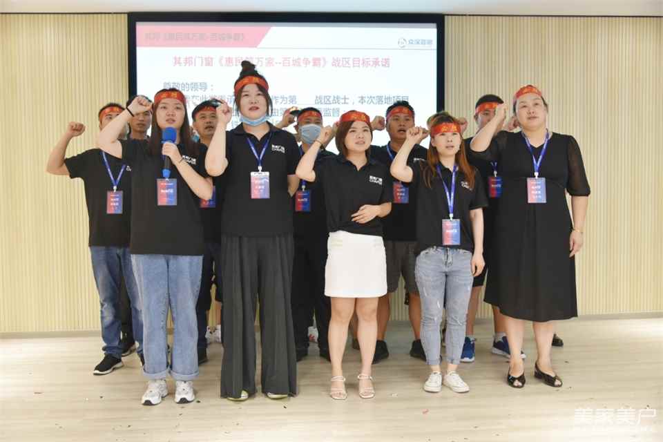 会上,其邦门窗营销团队集体上台背诵其邦十大军规,整齐的步伐,嘹亮的声音,展示出其邦人昂扬的气势和高昂的斗志,也让经销商家人们更加热血沸腾,对此次百城争霸活动更有信心。