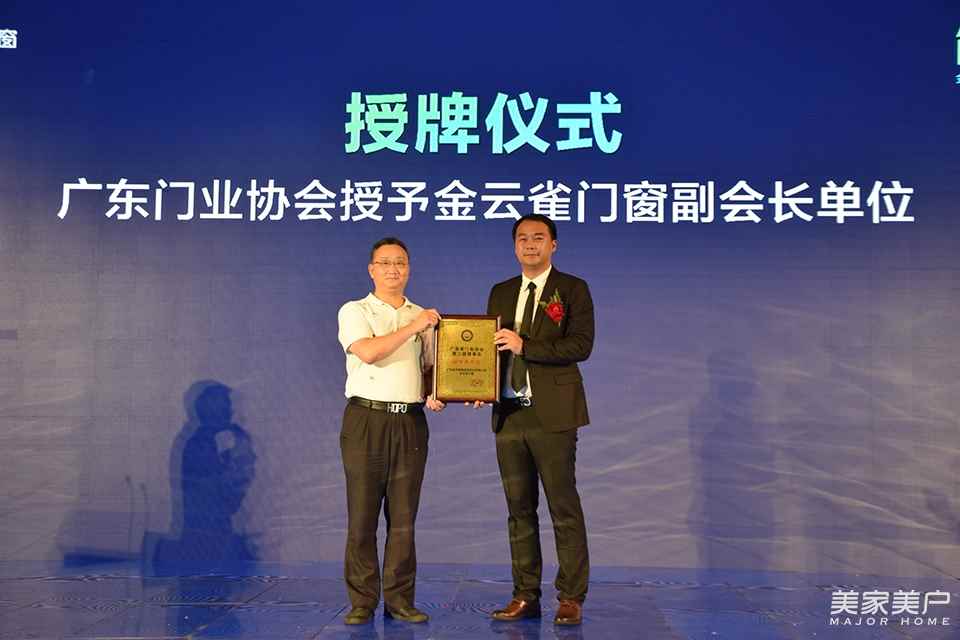 广东门业协会秘书长徐生为本次晚宴贺辞,并授予金云雀门窗副会长单位。徐秘书长表示,金云雀门窗全渠道业绩逆势增长,就证明了没有不好的市场,只有不好的企业。