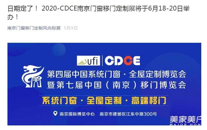 作为疫情有效防控下南京首个恢复的大型室内展、2020年华东区行业首展,CDCE2020第四届中国系统门窗·全屋定制博览会暨第七届中国(南京)移门博览会于今日圆满落幕!