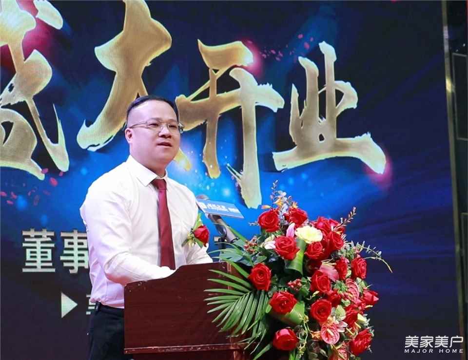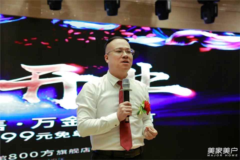 派雅营销总经理陈海全先生致辞,派雅门窗成立于上世纪90年代,30年专注,只做好门窗,30年铸造荣耀与辉煌,是中国高端家装定制的开拓者、领潮人,是广东省门业协会铝门窗专委会会长单位,是30万㎡的现代铝门窗航母级生产制造基地,全国1000多家专卖店,多达3万人的服务团队,服务于中国亿万家庭!