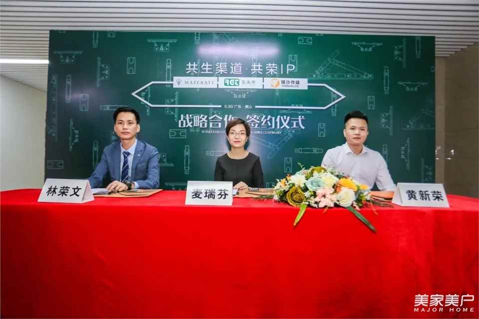雷圭蒂系统门窗五金、顺德玛莎拉蒂、银沙传媒三方正式签约战略合作,“两蒂一银,你中我意”共同携手见证。