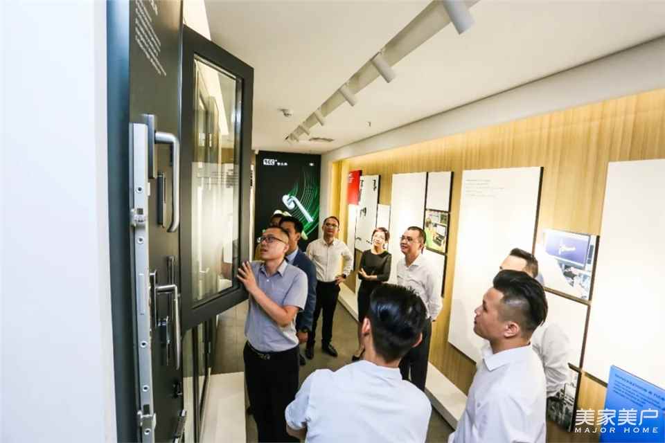 签约仪式前,与会嘉宾代表们参观雷圭蒂系统门窗五金展厅。