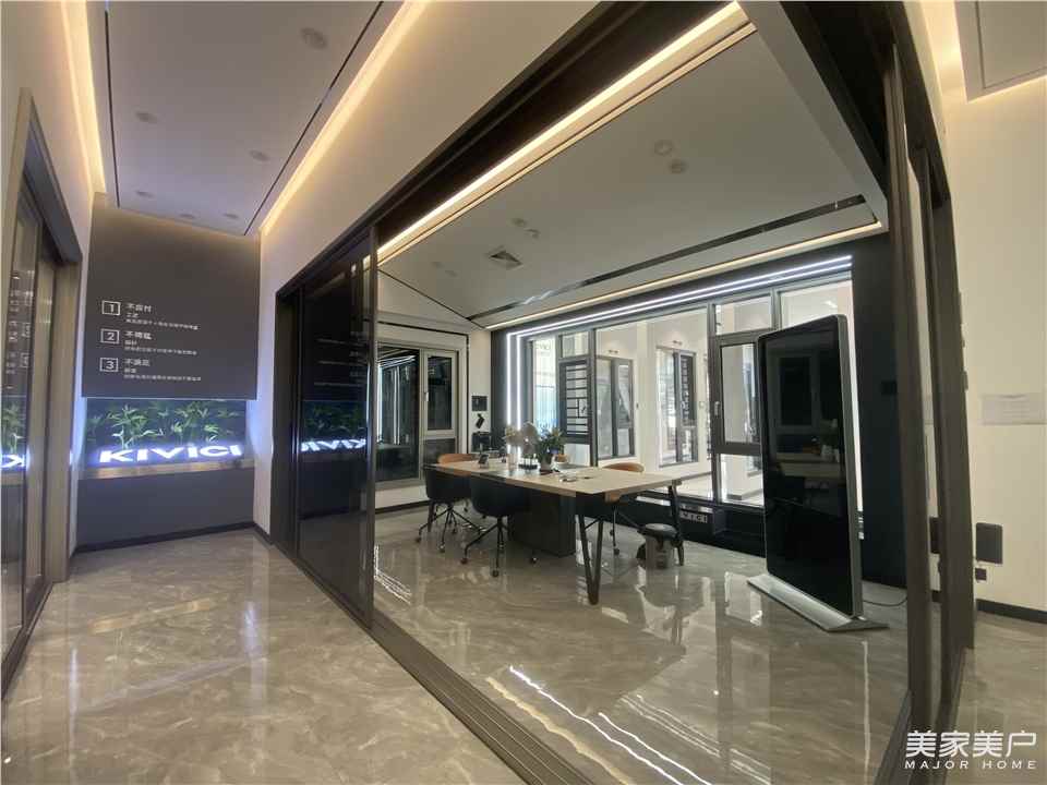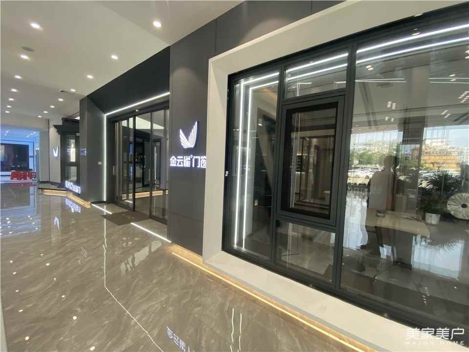 在品牌VI、SI形象提示的同时,金云雀门窗又在“5G+”上大胆赋能,为产品增添了以“科技+智能”的功能元素。为了带给消费者全新的认知,金云雀门窗对展厅进行全新升级。展厅以极简轻奢为设计理念,采用的是当下最流行的沉浸式轻奢装修风格,大量新产品的亮相迎合了当下最潮的家装消费观念。