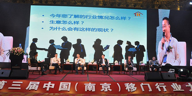 此次会议主要由分享篇和巅峰论坛两大部分组成。分享篇首先由佛山门窗商学院院长曹英杰与大家一起分享企业如何进行“招商”、“养商”,其次是南京市移门行业协会秘书长何建国作了2017年第四届中国(南京)移门博览会及其新动向、会员权益、工作计划的介绍。在巅峰论坛上,嘉宾就“如何看待移门企业计划?目前广东省及江苏省的行业发展现状如何?目前移门企业面临的困境如何积极解决?未来行业的发展走向?做专卖店的前景以及如何招商?配套企业如何支持门厂的发展?”等话题进行了分享。深圳好博窗控技术有限公司产品中心总经理刘治国在会上致辞,分享了《家装门窗系统五金应用特点》。欧登堡门业总经理张芳代表第三届移门博览会展商发言,就参与博览会的好处与不足向与会嘉宾进行了分享。南京市移门行业协会秘书长、南京淘逸轩信息科技有限公司总经理何建国就2017第四届中国南京移门博览会情况及新动向进行介绍,同时对协会会员权益及协会未来的工作计划作了详细的讲解。