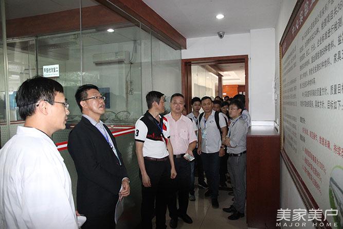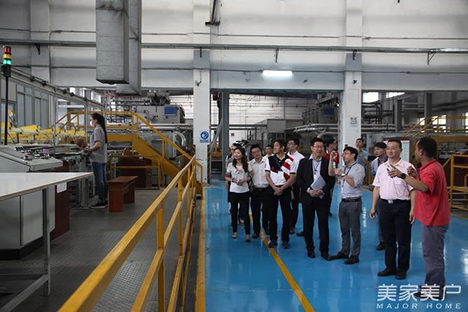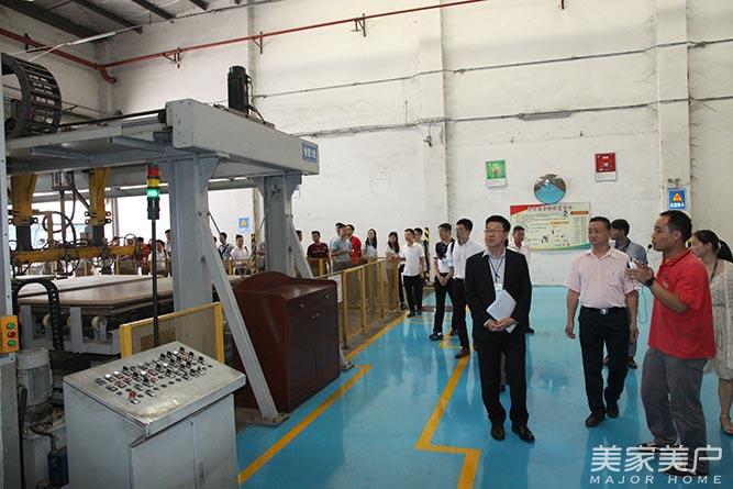 上午,考察团一行到达“索菲亚”广州增城市新塘镇宁西工业园后,在“索菲亚”供应链及客服部总监吴浩等人的陪同下,参观了索菲亚家居研究院(家具材料实验室、热力学实验室、甲醛检测室等),以及索菲亚智能化、工业化的柔性生产线,快速贴面等生产车间。在各生产车间,考察团一行近距离参观了“索菲亚”家居产品的生产流水线。参观后,考察团一行对“索菲亚”智能化、工业化的柔性生产线均赞叹不已。据悉,2013年,“索菲亚”引入全亚洲第一条定制衣柜企业柔性自动化生产线。该生产线由信息软性系统与生产硬件系统结合而成,软件系统整合了ERP等多个软件,下单、拆单等工序都可由系统自动生成,保证质量的同时能够提高效率,节省成本,有效解决了“索菲亚”生产交付方面的瓶颈。