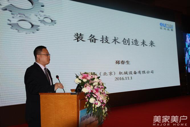 随后,天坛家具总经理杨金才、TATA木门董事长吴晨曦、吉林森工北京分公司总经理赵崇联、山东万家园总经理王绍新、柯尚木业董事长罗杰、顶立总工程师罗平、大咖木门董事长吕文广、汇龙涂料家具漆事业部总经理史国成、海诗蔓五金董事长韩军、欧码(北京)机械设备总经理邳春生等一线企业负责人或高层发表主题演讲。杨金才认为,企业找准自己的定位和改革创新的对象是极其重要的举措,同时要平衡定制化与标准化之间的资源分配,控制好投入产出比,最终达到互利共赢、共赢发展。TATA木门董事长吴晨曦主题演讲《TATA未来的战略布局》。他说:“TATA木门希望以自身的实力、智慧、勇气,以及对社会、对行业的责任,在世界范围内打造‘TATA’品牌,为提倡唯美、科学的居住环境,做出自己的贡献。”吉林森工北京门业分公司总经理赵崇联作了《引领生态体系木门制造新潮流》的主题演讲。他认为,当前的木门行业正在向整体家装与互联网家装方向发展,木门俨然已经从家装配角转换为了家装主角,这就要求我们,在满足产品最基本的功能需求之外,要更加多元化的发展,使之适应多变的市场。
