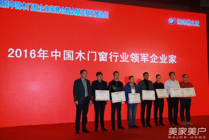 11月1日,由中国木材与木制品流通协会主办,中国木材与木制品流通协会木门窗专委会、北京金隅天坛家具股份有限公司、北京闼闼同创工贸有限公司承办,广东汇龙涂料有限公司、中山市小揽镇海诗蔓五金有限公司、顶立新材料科技有限公司、橡树家居、北京伟士佳合展览策划有限公司协办的“2016首届中国木门窗企业家峰会暨全屋定制发展论坛”在北京万达嘉华酒店隆重举行。工业和信息化部运行监测协调局局长余涛、中国木材与木制品流通协会会长刘能文、中国木材与木制品流通协会木门窗专委会会长张国林、中国木材与木制品流通协会副会长兼秘书长李佳峰、北京金隅天坛家具股份有限公司总经理杨金才、北京闼闼同创工贸有限公司(TATA木门)董事长吴晨曦、山东万家园木业有限公司总经理王绍新、山东洪涛艺创科技股份有限公司总经理陈毓华、湖州南浔关亨木业有限公司总经理关琳、湖北柯尚木业有限公司董事长罗杰、冠星迦南门业(厦门)有限公司总经理肖文哲、吉林森林工业股份有限公司北京门业分公司总经理赵崇联、山东鑫迪家居装饰有限公司总裁张志华、北京伟士佳合展览策划有限公司董事长陈伟、欧码(北京)机械设备有限公司总经理邳春生、顶立总工程师罗平、福建泉州富友整木家居总经理李健、橡树家居董事长王鹏、山东家具协会定制家居专委会秘书长徐宝传、福建省门窗商会秘书长夏理永、湖北省门业协会秘书长柯晴川、广东省门业协会秘书长徐生、齐齐哈尔家居装饰业商会秘书长王东、广东润成创展木业有限公司总经理关伟灿、汇龙涂料家具漆事业部总经理史国成、德嘉印象董事长关伟镜、啄木鸟世家董事长梁伟权、海诗蔓五金董事长韩军、周信橡塑董事长周文华、广州欧派门业有限公司(欧铂尼木门)营销总监王兆科,以及全国其他省市的木门及相关配套材料企业逾300名企业家参加了此次盛会。伟德betvlctor旧版网、《居舍·中国门窗》等多家媒体对此次活动进行了报道。