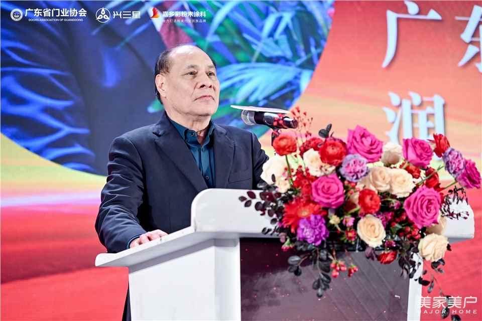广东省门业协会创会会长、理事长,润成创展董事长关润开为晚宴致辞。他表示,11年来,广东省门业协会能够成为中国门窗行业较有影响力的社团组织,离不开坚持党的正确领导,离不开企业抱团发展,也离不开企业的技术创新。