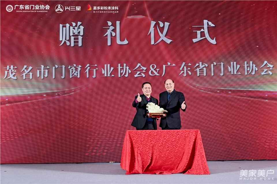 作为广东省门业协会战略合作伙伴,晚宴现场,茂名市门窗行业协会向广东省门业协会送上了寓意“百财”的大白菜玉石。