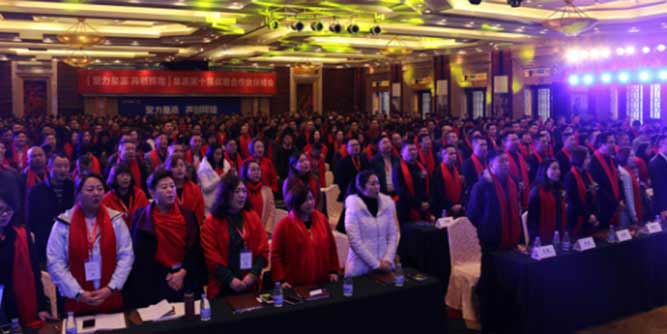 全场合唱《皇派之歌》把现场气氛推向高潮,皇派门窗董事长朱福庆现场致辞表示说:“中国高速增长红利已经消失,新常态下,企业面临的不仅是挑战,更多是大作为的局面,我们应该同心协力,一心向前,登上国际舞台。今年皇派门窗超额完成目标,实现持续增长,得益于全体皇派家人一路向前的决心。”朱福庆的致辞极大鼓舞了经销商们的士气,让大家对明年发展充满信心。