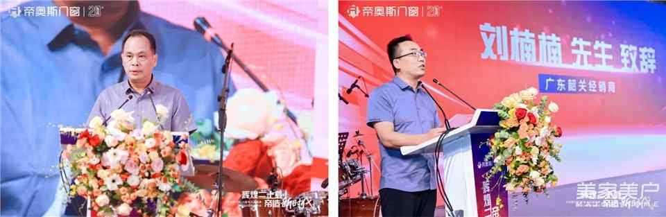 来自广西玉林的经销商黄传强和广东韶关专卖店的经销商刘楠楠,作为经销商代表上台发言,分享了自己加盟帝奥斯门窗的心路历程和与公司多年合作的深厚情感,并表示将紧跟总部步伐,共同开拓市场,为消费者提供更加优质的产品和服务。