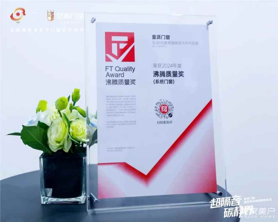 旗舰星品,荣誉加冕。皇派门窗在广州建博会开展首日,凭借强劲的产品研发实力和技术革新能力,斩获两大产品荣誉奖项。2024年新品"托斯卡纳100双内开窗"以其创新设计和卓越性能成为「2024大家居建装行业百大新品」,“亚运100双内开内倒窗”荣获「沸腾质量奖」,这不仅是对皇派门窗产品创新和质量的肯定,更是对皇派门窗品牌实力的有力证明。