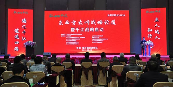 12月28日,“立人达人 知行合一,德汇千江 道通四海”东西方大师战略论道暨千江战略启动仪式在肇庆国家高新区悦凯国际酒店盛大举行,全国千江客户以及行业协会专家约500余人齐聚现场,共同见证千江的新发展,聆听东西方大师的思想碰撞。