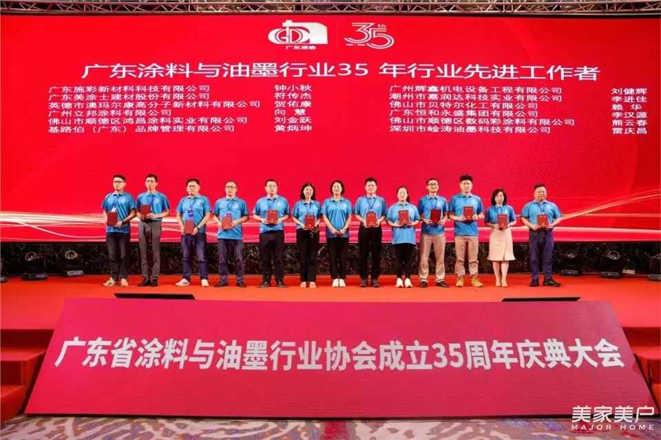 2024年,是中华人民共和国成立75周年,也是广东省涂料与油墨行业协会成立的35周年。为纪念广东省涂料与油墨行业协会成立35周年,全面展示广东涂料35年来所取得的显著成就,进一步加强对广东涂料发展的总结、宣传、推广,在本次大会上,隆重表彰了一批优秀企业,以及有突出作为和贡献的个人。