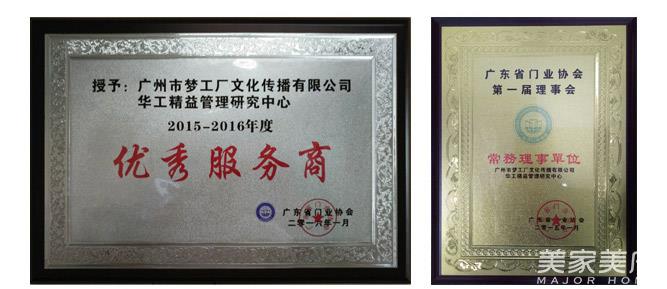 广东省门业协会授予梦工厂“优秀服务商”称号& 广东省门业协会常务理事单位