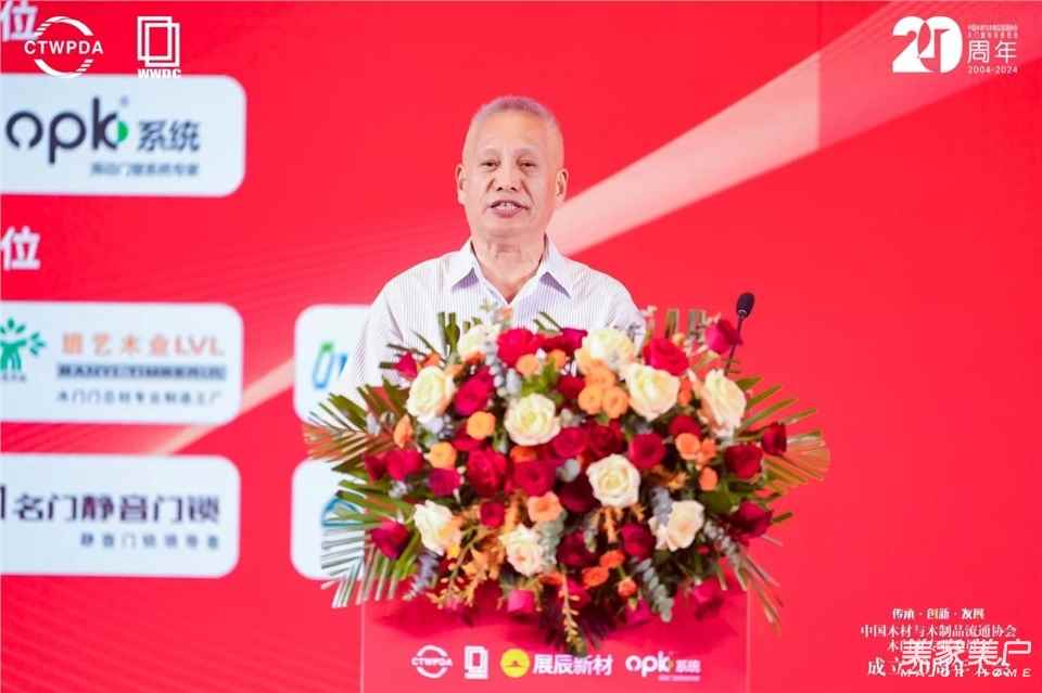 中国木材与木制品流通协会木门窗专业委员会会长关润开致辞强调,中国木门行业在过去20年中涌现出众多优秀企业和知名品牌,为行业的发展做出了重要贡献。面对当前家居行业的转型挑战,企业应继续坚持品质、不断创新、顺应潮流,以此确保可持续发展和行业竞争力。