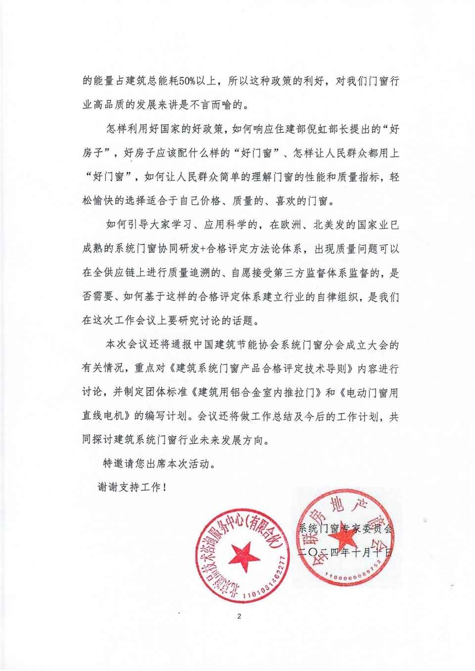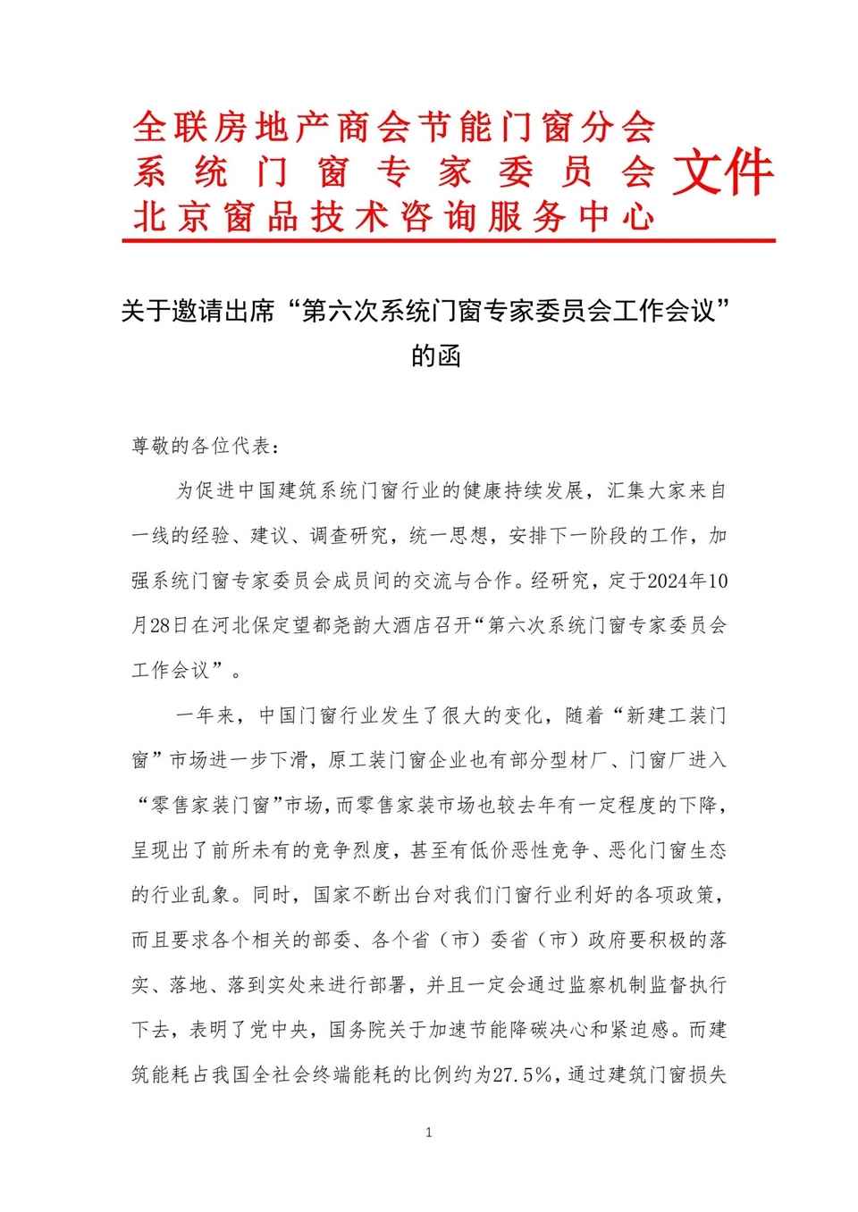 关于邀请出席“第六次系统门窗专家委员会工作会议” 的函