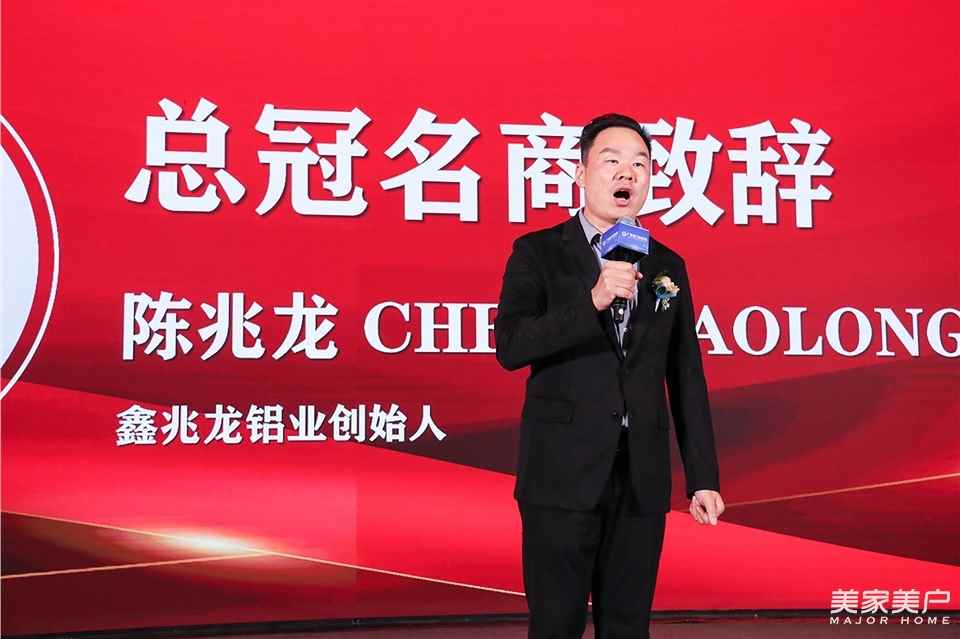 总冠名单位、鑫兆龙铝业创始人陈兆龙在致辞中提出,“鑫兆龙铝业一直致力于技术创新与品质提升,旨在为门窗企业提供更可靠、更环保、更具竞争力的铝木型材解决方案。未来,鑫兆龙将继续与各位同仁携手共进,共同开创门窗行业的新篇章。”