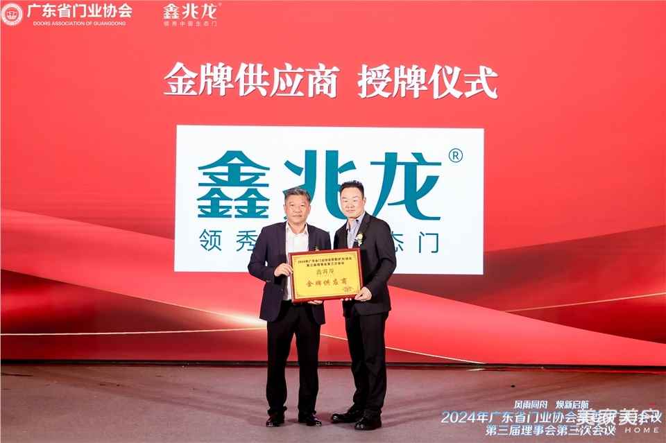 为表彰门窗产业链企业为推动门窗行业发展所做出的贡献,协会分别向荣获“金牌供应商”:鑫兆龙铝业,以及“合作伙伴”:先锋期货,“优秀供应商”:数夫软件、亮厦五金、欧诺风、锐诺、麓特丹、酷家乐、海富纳智能装备、俊美琪粉末涂料、雷德数控、玥玛智能锁、赛禾、金利丰机械、明骏广告颁发了荣誉牌。