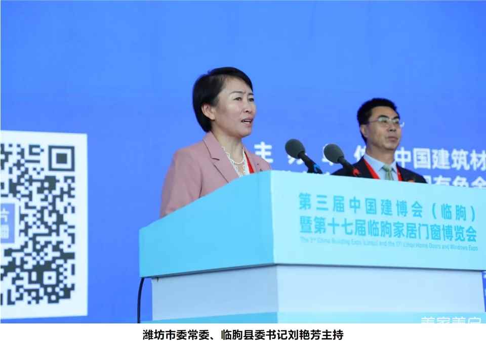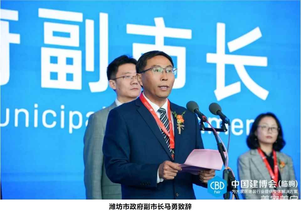 开幕式由潍坊市委常委、临朐县委书记刘艳芳主持,潍坊市副市长马勇、中国建筑材料流通协会会长秦占学分别致辞。