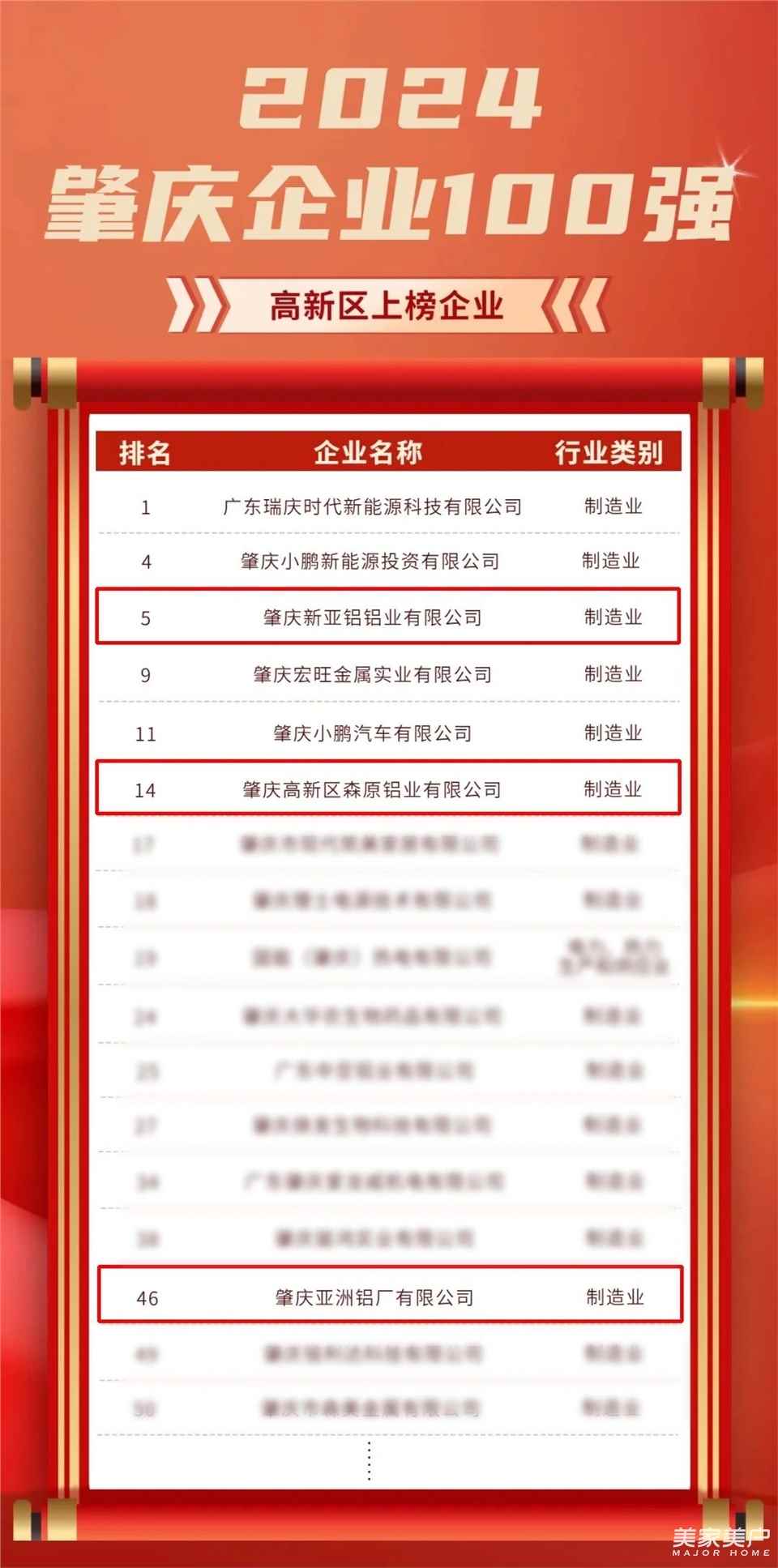 2024肇庆企业百强发布,亚铝工业城四家公司入榜!