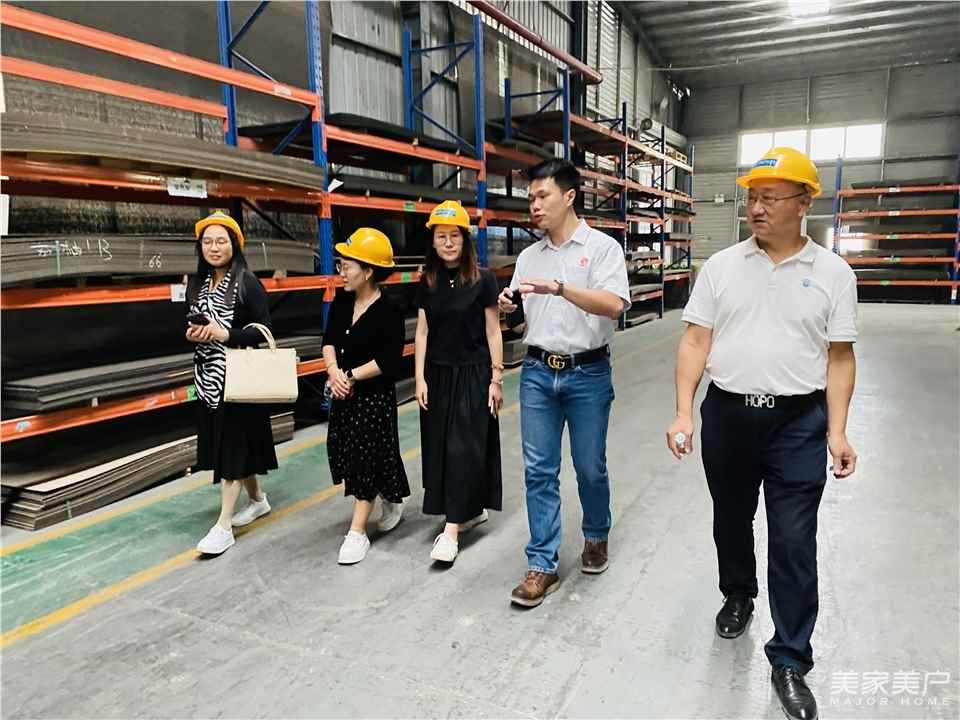 在考察东升门业智能生产基地,几位专家领导与广东省门业协会生态门专委会秘书长赖连才进行了交流,并在信美门业董事长方照治,千润面板董事长薛魁、副经理唐文照,同福门业总经理黄志斌,广东省门业协会生态门专委会秘书长助理蒋焕芳的陪同下,考察了巧固门业、信美门业、千润面板、同福门业4家优秀的中山木门及材料企业。