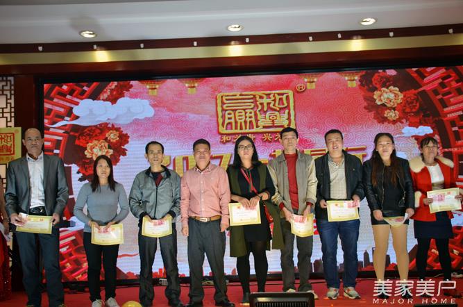成功的背后,总有着一群默默奉献的人,在过去的2016年里他们用专业、积极、用心的态度去履行自己的职责,收获了2016年度优秀员工这一殊荣。在全体员工热烈的掌声和祝福中,总经理关锦胜为他们颁发了奖牌,鼓励各位在新的一年中一起努力,更进一步。随后还颁发了2016年度优秀供应商奖,感谢他们为和兴赢的发展提供了源源不断的后续力量。最后和兴赢企业高管及六位股东上台为大家祝酒。