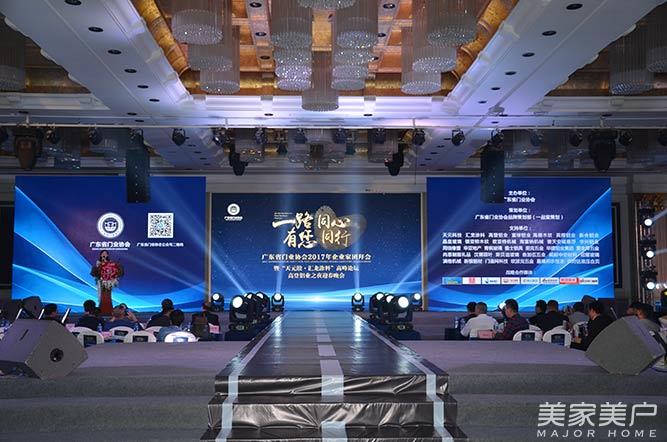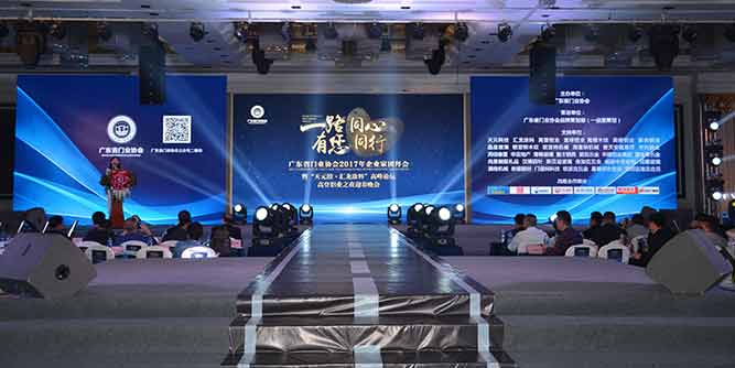 2017年1月4日,由广东省门业协会主办,广东省门业协会品牌策划部(一品堂)策划,天元科技、汇龙涂料、高登铝业、富球铝业、高德木纹、英辉铝业、新河铝材、晶皇玻璃、镁亚特木纹、欧亚特机械、海富纳机械、普天安磁悬浮、华兴铝业、周信橡塑、华亚地产、青枫玻璃、雅士锁具、朋克五金、华建铝业集团、雷圭蒂五金、尚恩制服礼品、汉狮百叶、斯贝迪玻璃、叁加伍五金、威耐中空材料、冠耀玻璃、满格机械、新银铝材、门道网科技、欧派克五金、星德邦水性漆、依时达液压合页支持的“广东省门业协会2017年企业家团拜会暨‘天元·汇龙涂料杯’高峰论坛、高登铝业之夜迎春晚会在佛山嘉思高酒店隆重举行。
