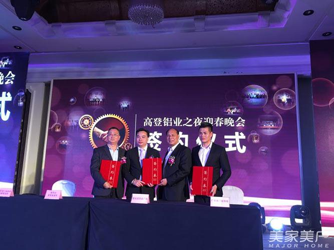 在“高登铝业之夜”迎春晚会上,华亚地产董事长梁锡华向与会嘉宾介绍了碧桂园·华亚广场全屋定制全球采购中心的项目情况。同时,会上还举行了广东省门业协会、新华社·家居直通车入驻华亚广场签约仪式。此外,参与本次团拜会的各赞助商上台分别就各自的企业进行了简单的介绍。