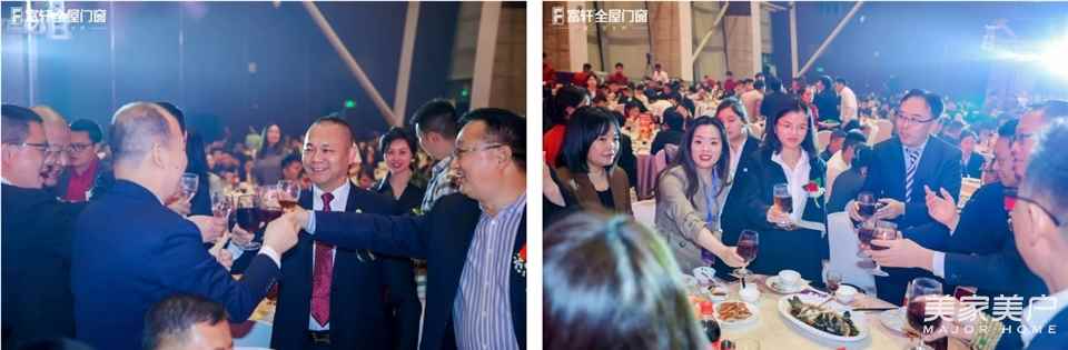 晚宴在流光溢彩的镁光灯下盛大开启,富轩集团董事长李昌安先生、广东省定制家居协会秘书长曾勇先生、广东省门业协会执行会长徐生先生、广东省门窗协会秘书长管琪林先生在晚宴上进行致辞,拉开了晚宴的序幕。