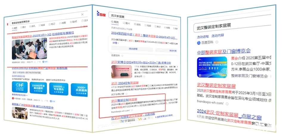 就 借助百度推广的强大力量,2025首届武汉整装定制家居展成功实现了对目标受众的精准定位与高效触达。据统计,百度推广的曝光量已超过500万+人次,通过关键词优化、地域定向、兴趣标签等多种精准营销策略,百度推广精准锁定了对展会感兴趣的用户群体。