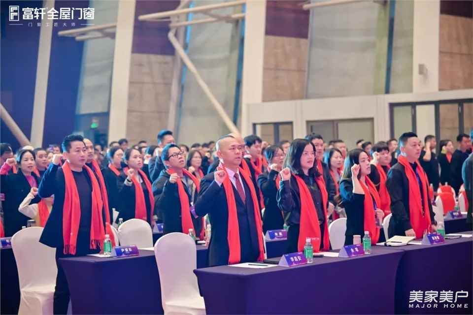 旌旗招展,誓启新征。在峰会现场,富轩全屋门窗董事长李董和营销中心总经理翁总带领全国各大战区负责人举行了庄重的2025年度营销中心授旗仪式和目标誓师仪式,在明确的新目标和洪亮的宣誓词中团结奋进,充分展示了富轩铁军百折不挠、勇往直前的拼搏精神以及团队精神。