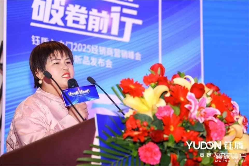 紧接着,钰盾入户门品牌营销总监骆总为大家解读钰盾门业2025营销规划。会上,骆总回顾了家居行业过去25年的趋势及钰盾2024年所取得的卓越成就:扩建佛山5万平厂房,引进国际油漆技术,升级品牌形象和官网,扩大团队,增设招商、品牌、商学院部门,并荣获多项大奖。展望2025年,钰盾将面向全球,开启高定入户门定位,致力于数字化营销,专注原创设计,推动工艺升级,全方位布局产品与渠道,拓展全国市场,强化品牌建设,打造专业团队。
