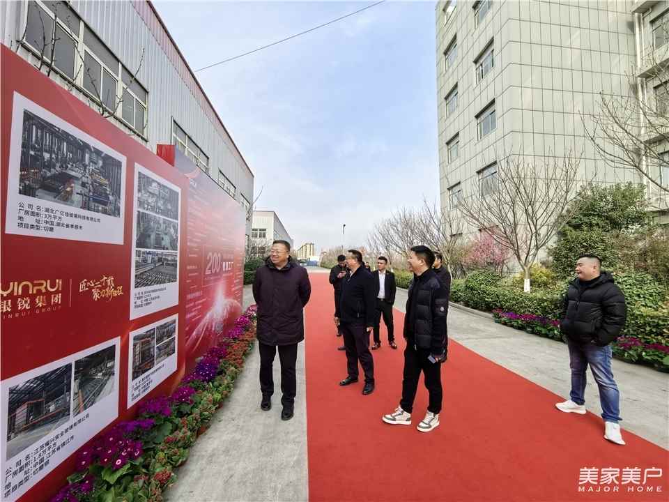 2月17日,中国工程建设标准化协会幕墙门窗专委会主任委员王洪涛、副秘书长王蕾,广东省门业协会执行会长徐生、秘书长饶德亮,以及轩尼斯门窗副总裁钟向明、派雅门窗陈国成、伊盾门窗石现甲等领导和广东省门业协会会员企业代表,走进安徽省蚌埠市银锐集团生产基地进行考察学习。银锐集团董事长朱晓玲、销售总监孙国超等领导对考察团的到来表示热烈欢迎,并进行了热情接待。