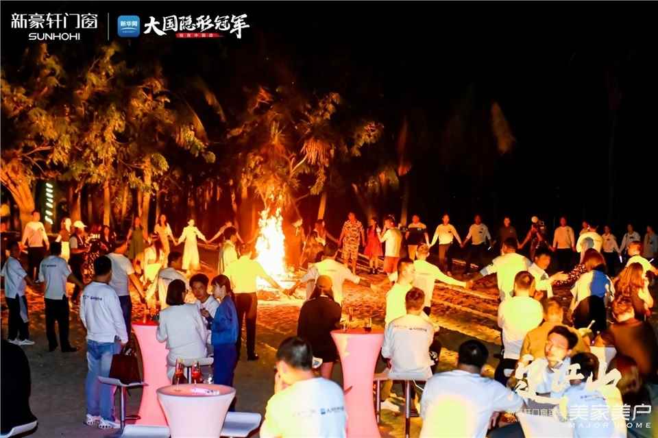当晚,备受期待的新豪轩门窗星光之夜,在乐队的激情演唱中拉开帷幕。别开生面的篝火表演,激情高亢的歌曲演唱,在海风吹拂和火光映照下,将派对的气氛推向高潮。新豪轩的三亚之旅,也在群星的照耀下画上完美句号。